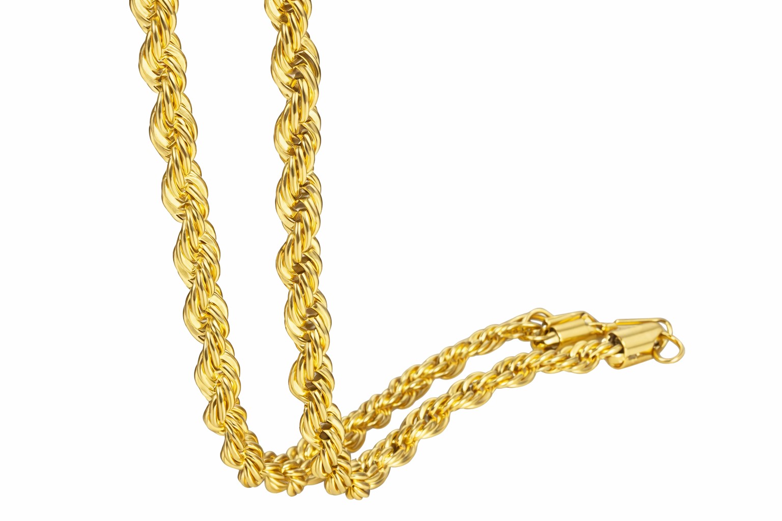 Gold Plated Stainless Steel Rope Chain 18″ Inches