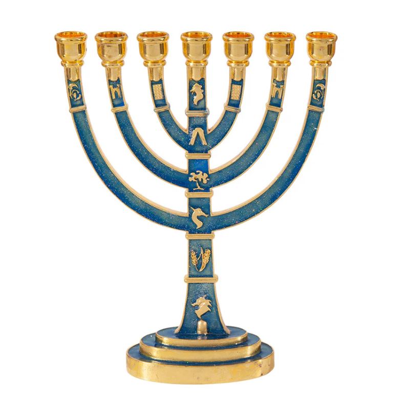 Blue and Gold Metal Menorah.