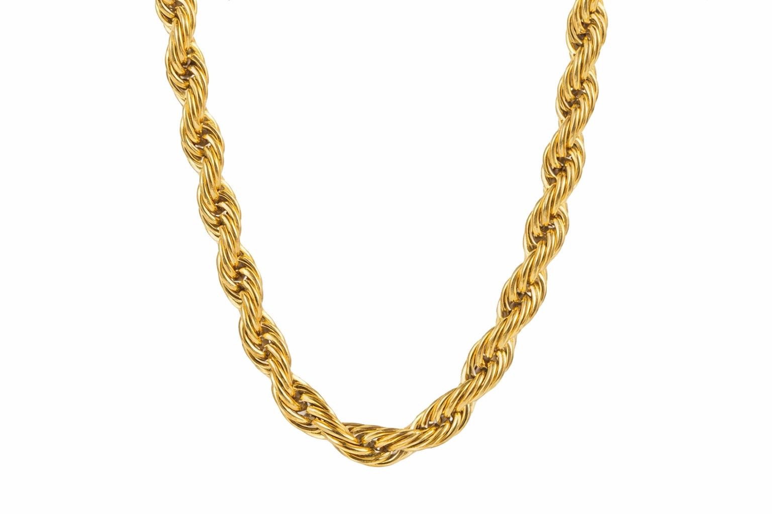 Stainless Steel Rope Chain 18″ inches long with Gold Plating. Stainless Steel is very sturdy