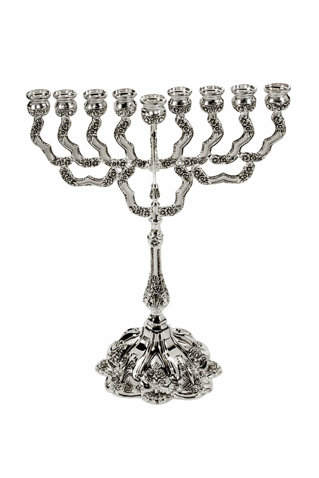 Painted Pewter 9 Branch Hanukkiah Menorah 6″ Tall
