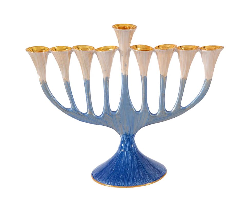 Gold and Silver Star of David Seven Branch Temple Menorah 7″ inches Tall