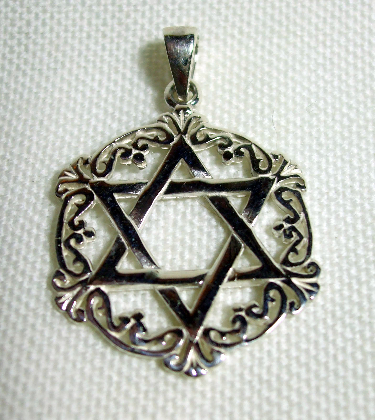 - Measures 1″ diameter Star of David within a filigree border.